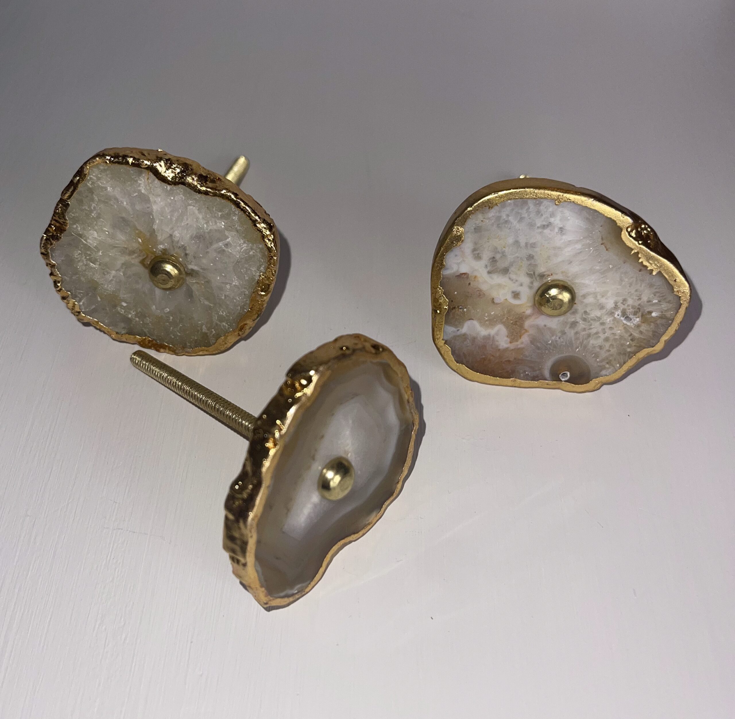 Stunning natural agate slice with an electroplated gold border. Each slice is unique and has a natural mineral dispersion pattern.