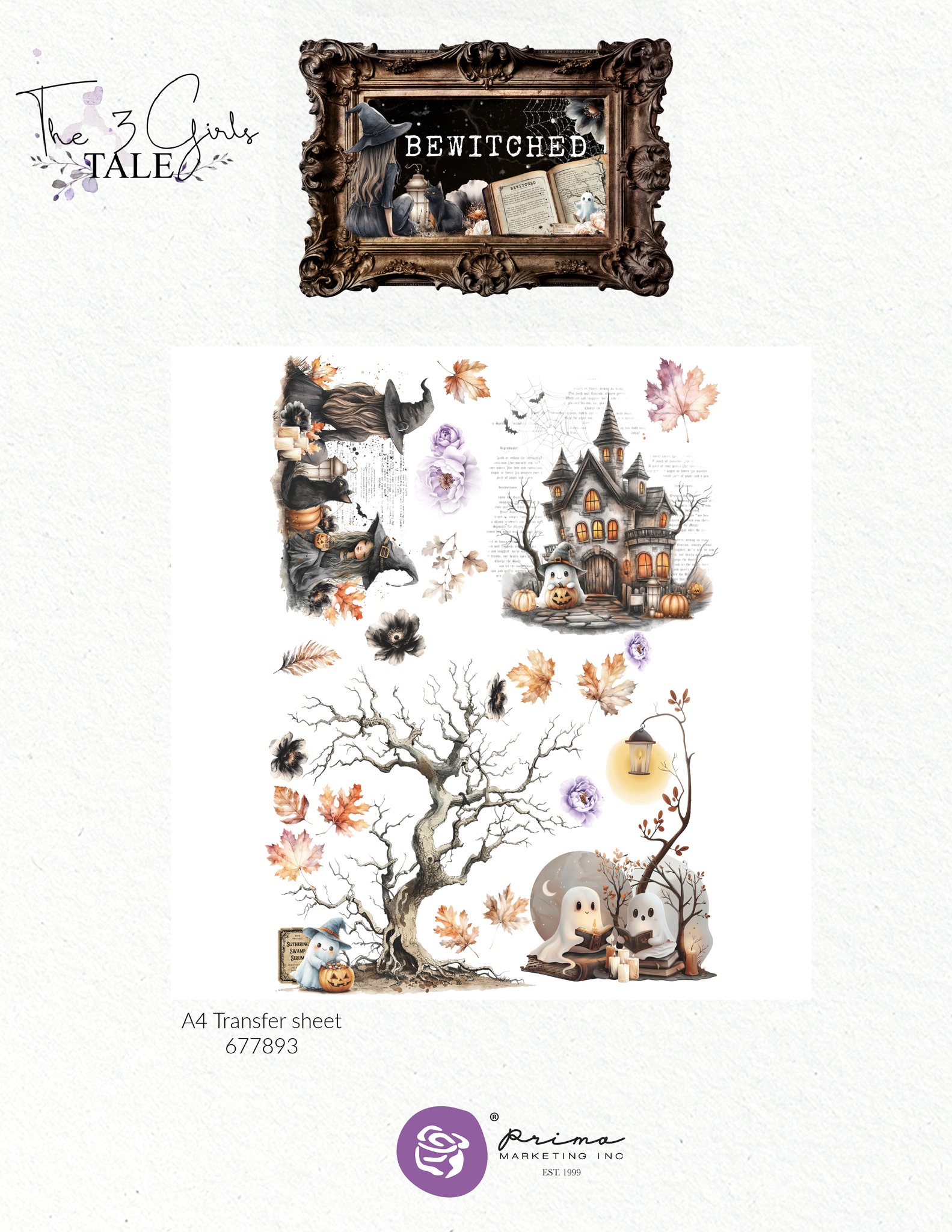A special milestone for The 3 Girls Tale—this is their very first A4 transfer sheet, and it’s pure storytelling magic. Designed for both paper crafting and home décor, it features signature Bewitched elements like the haunted cottage, bare enchanted tree, lanterns, florals, and the most lovable little ghosts.