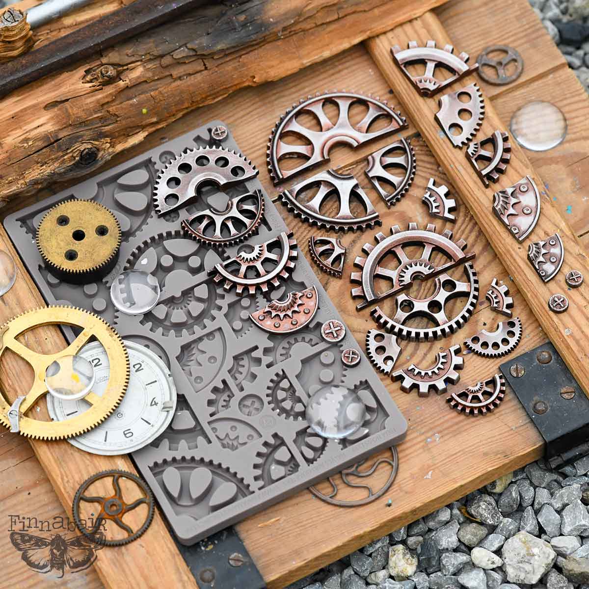Modular mechanical shapes built for layering—this mould features half-gears, slices, and structured elements that fit beautifully along edges, corners, or stacked together for depth.
